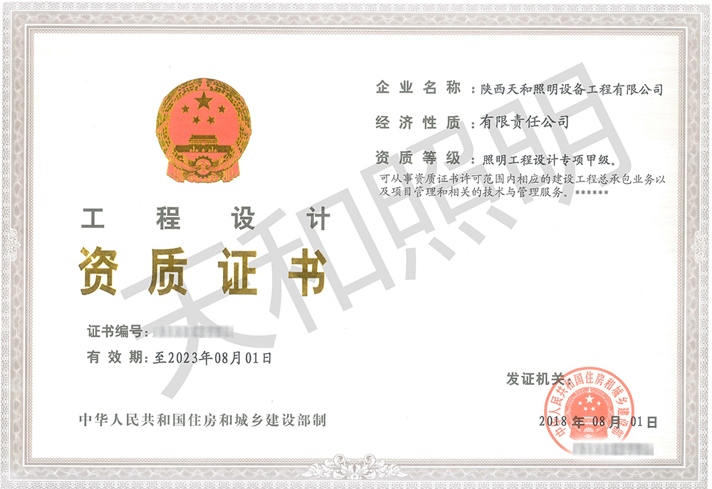 近日,陜西天和照明設(shè)備工程有限公司獲得了國(guó)家住建部頒發(fā)的《照明工程設(shè)計(jì)專(zhuān)項(xiàng)甲級(jí)》資質(zhì)證書(shū)。早在2011年,天和照明已獲取《城市及道路照明工程專(zhuān)業(yè)承包一級(jí)資質(zhì)》,至此,公司成功晉級(jí)全國(guó)照明行業(yè)“雙甲”資質(zhì)企業(yè)…